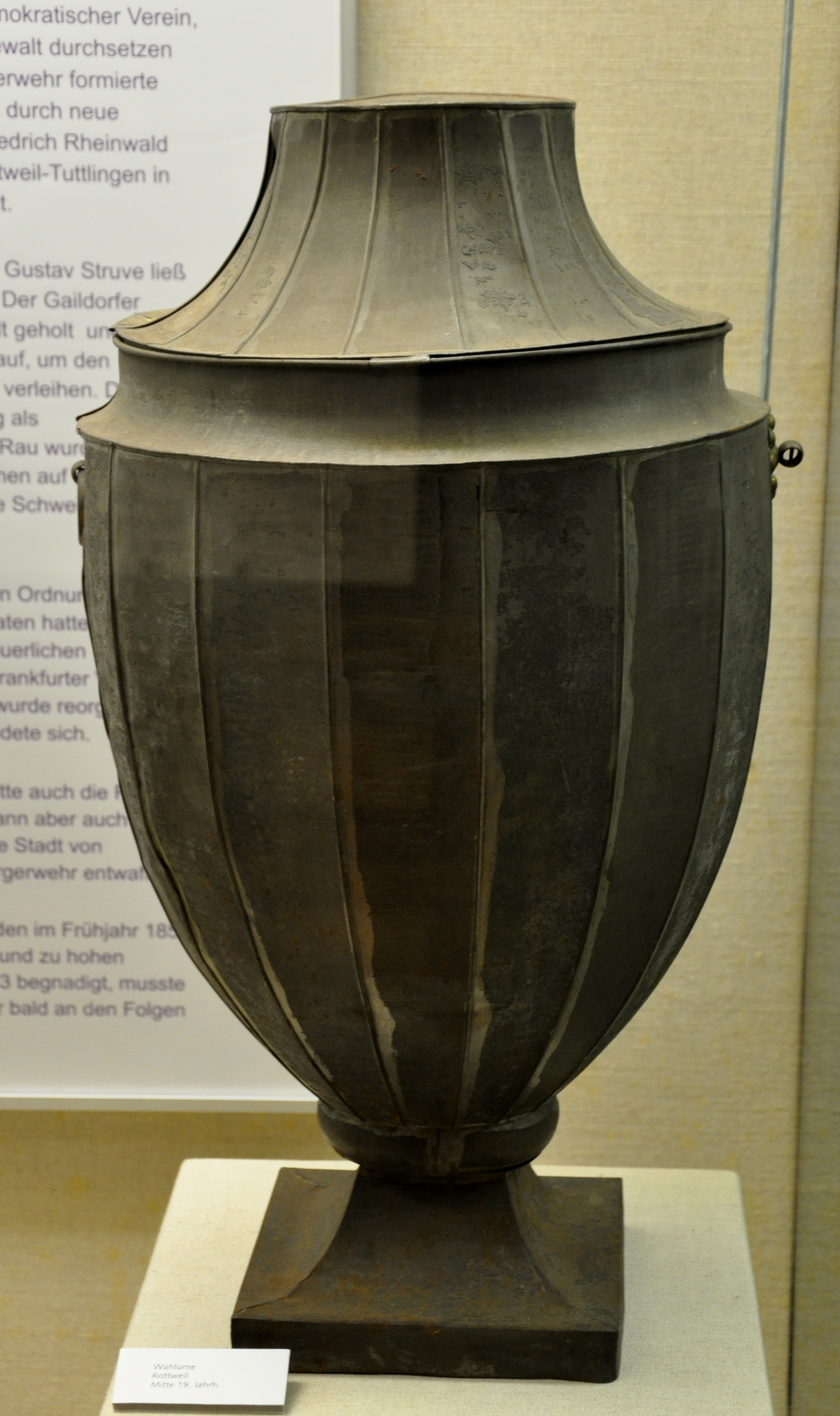 Wahlurne aus Rottweil, Mitte 19. Jahrhundert, damals noch wirklich in typischer Urnenform (Symbolbild)