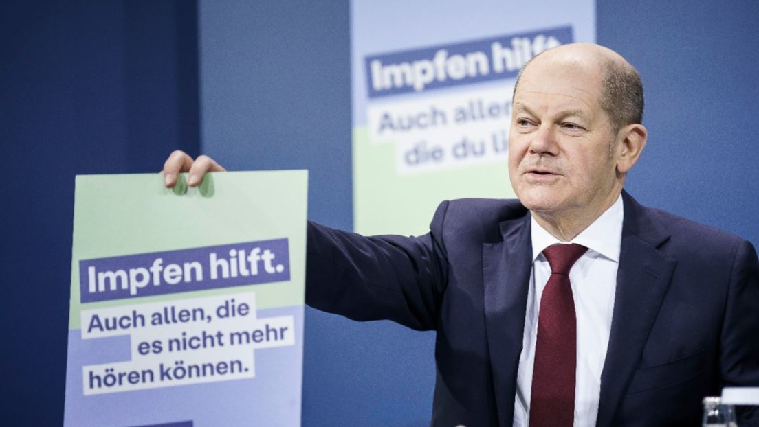 Bundeskanzler Olaf Scholz bei der offiziellen Vorstellung der COVID-Impfkampagne der Bundesregierung, 24. Januar 2022. Bild: Webseite Bundesregierung/Denzel