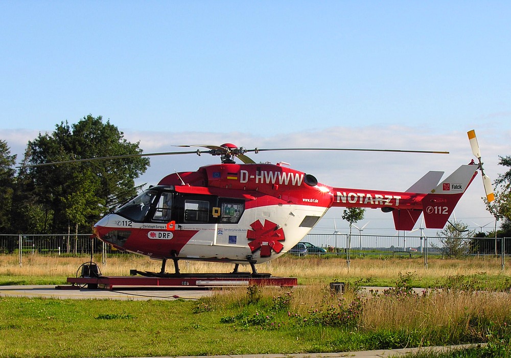 Hubschrauber der DRF-Luftrettung des Typs BK 117 Christoph Europa 5, Standort Niebüll