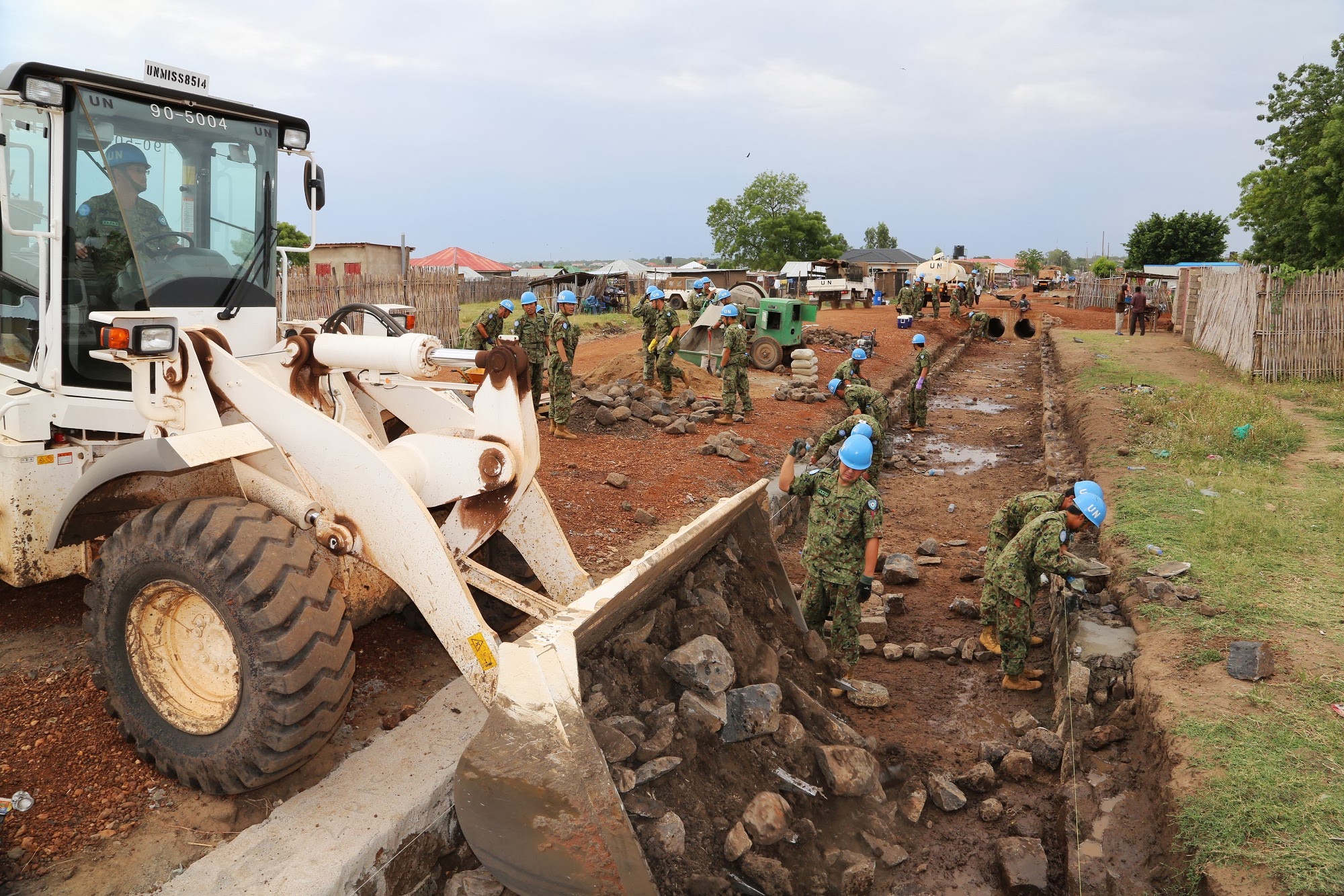 japanische UN-Blauhelme der UNMISS beim Straßenbau