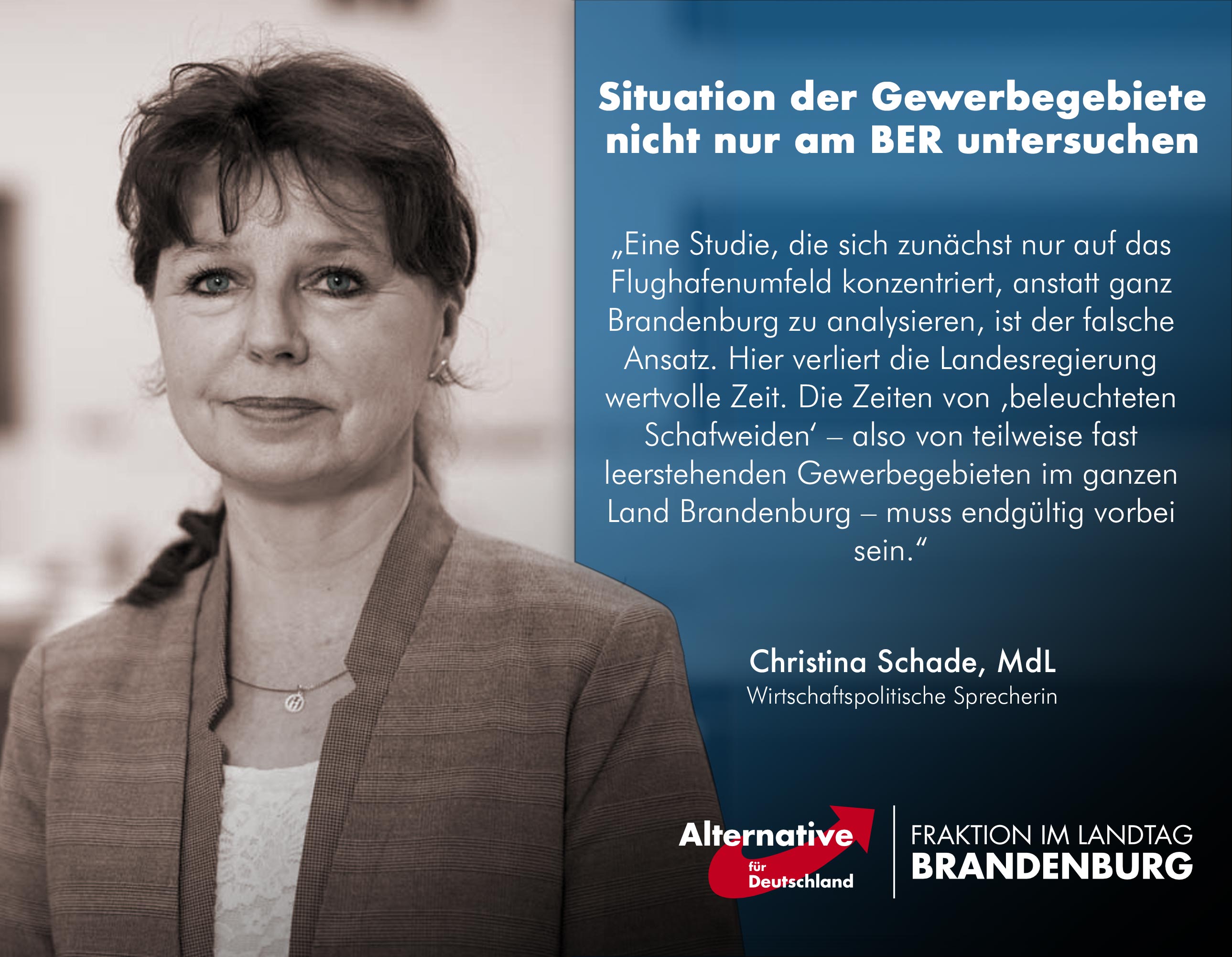 AfD-Fraktion: Studie zur Lage der Gewerbegebiete muss ganz Brandenburg berücksichtigen / Situation der Gewerbegebiete nicht nur am BER untersuchen / Die wirtschaftspolitische Sprecherin der AfD-Fraktion im Landtag Brandenburg, Christina Schade. Bild: "obs/AfD-Fraktion im Brandenburgischen Landtag/AfD-Fraktion Brandenburg"