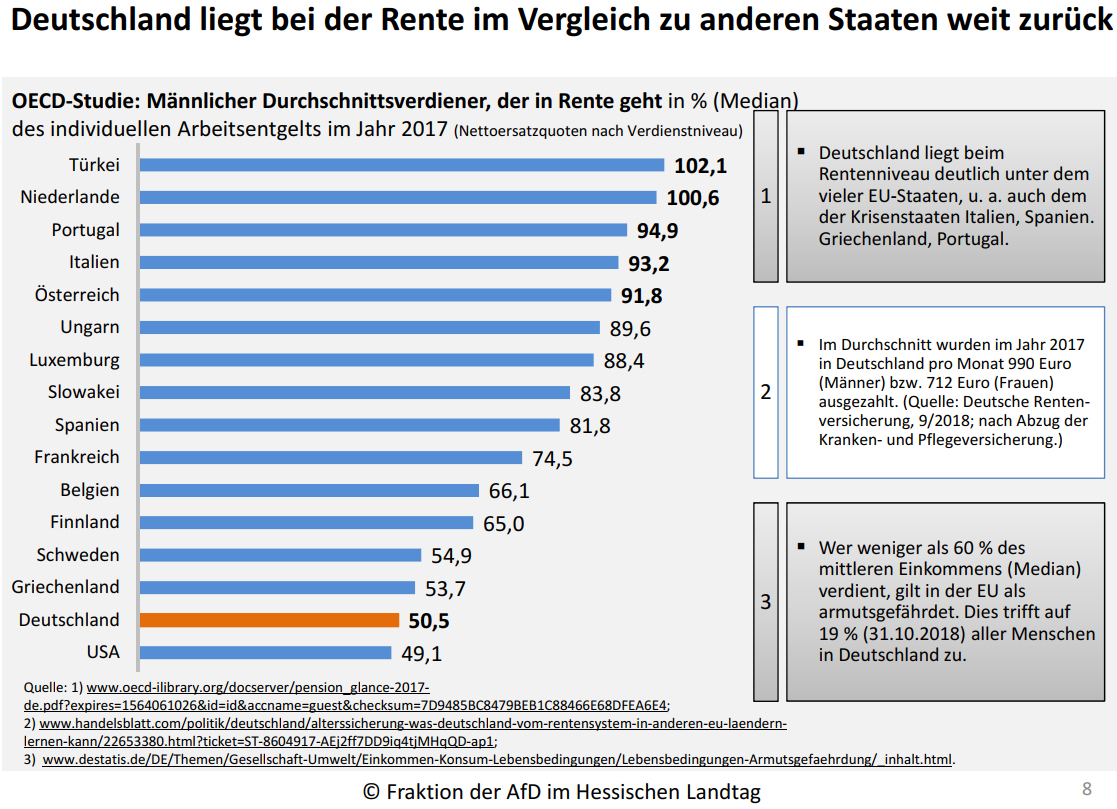 Deutschland liegt bei der Rente im Vergleich zu anderen Staaten weit zurück (Stand 2017)