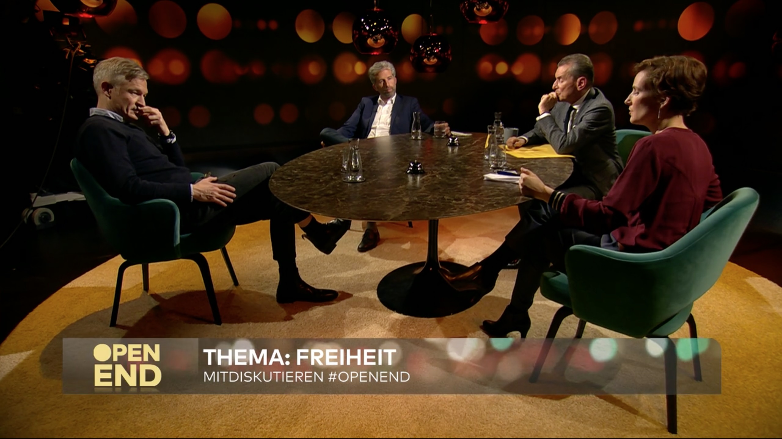 Katja Kipping, Boris Palmer, Ulf Poschardt, moderiert von Michel Friedman. Bild: WELT Fotograf: WELT