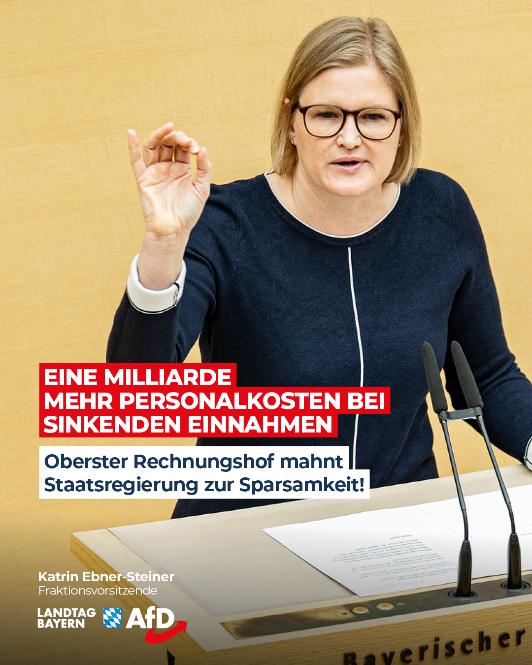 Zurück zu Katrin Ebner-Steiner: Eine Milliarde mehr Personalkosten bei sinkenden Einnahmen – Oberster Rechnungshof mahnt Staatsregierung zur Sparsamkeit!