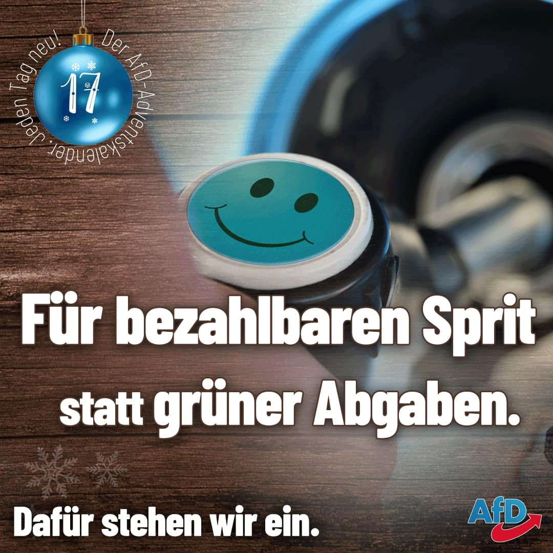 Zurück zu 17. Türchen im AfD-Adventskalender: Für bezahlbaren Sprit statt grüner Abgaben!