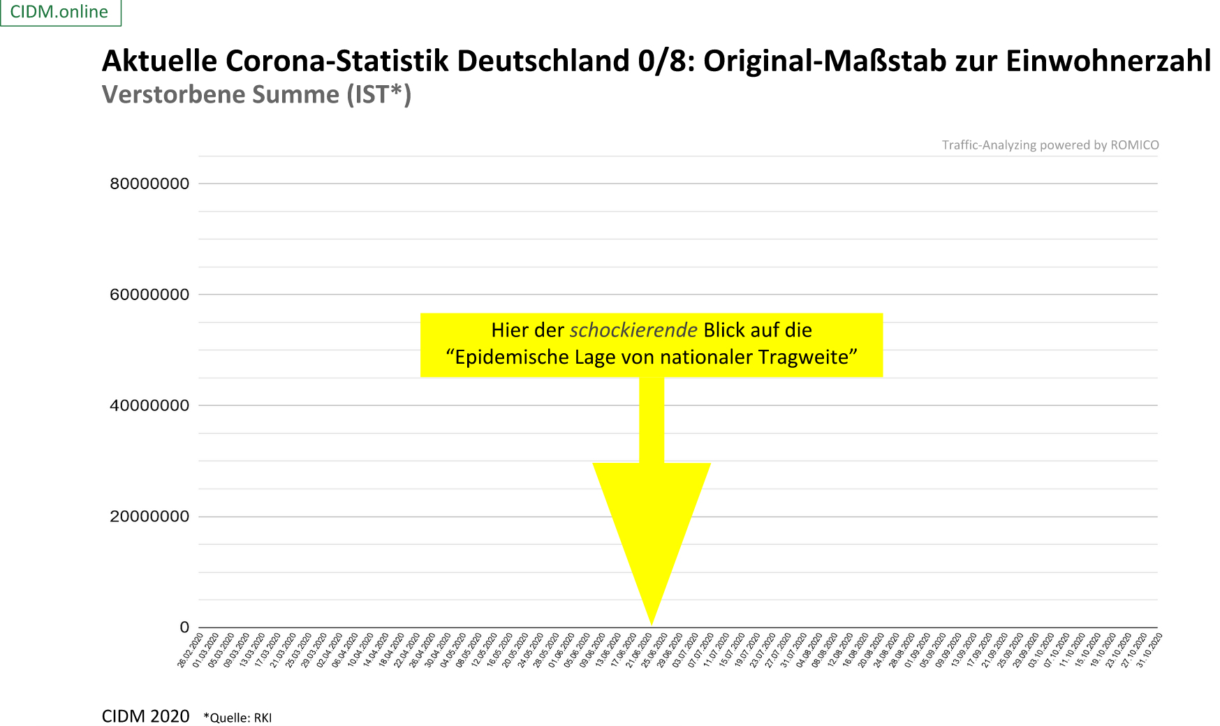 Hier ist die "Epidemische Lage von nationaler Tragweite" zu sehen: Zahl der "COIVD-19 Toten" im Verhältnis zur Bevölkerungszahl, Stand 27.10.2020