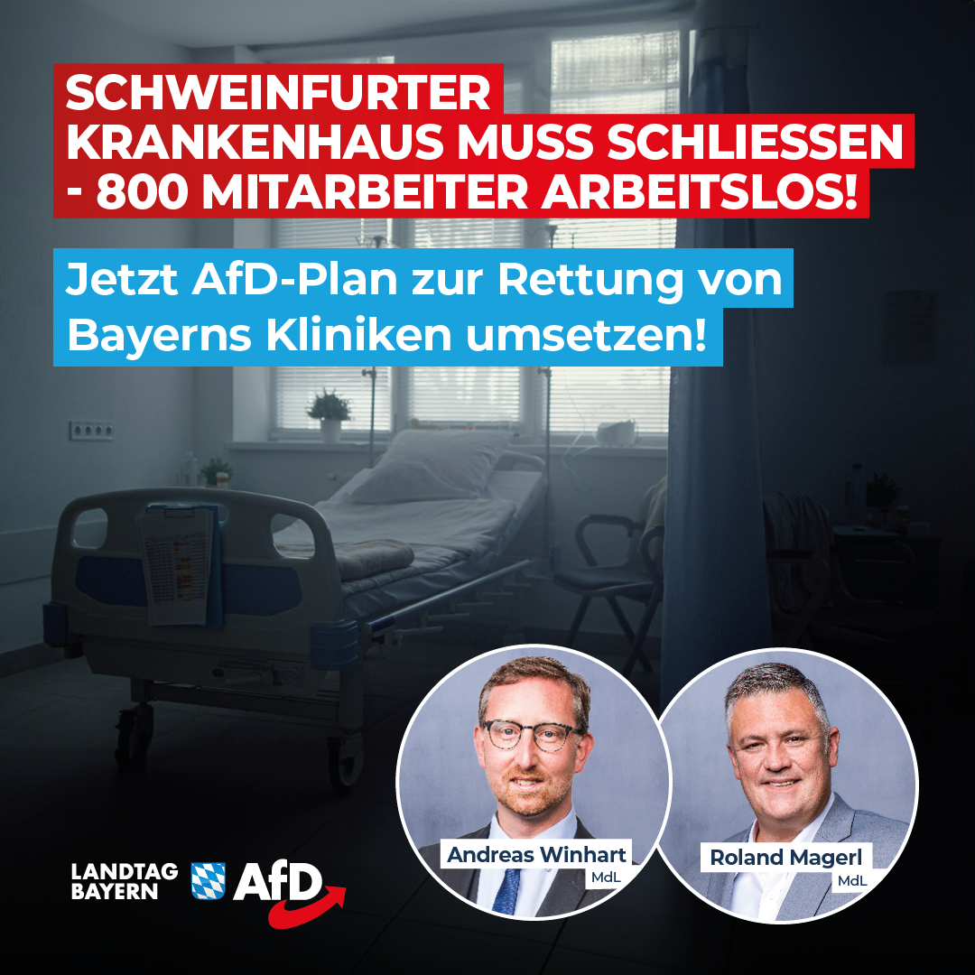 Zurück zu Andreas Winhart / Roland Magerl: Schweinfurter Krankenhaus muss schließen – Jetzt AfD-Plan zur Rettung von Bayerns Kliniken umsetzen!