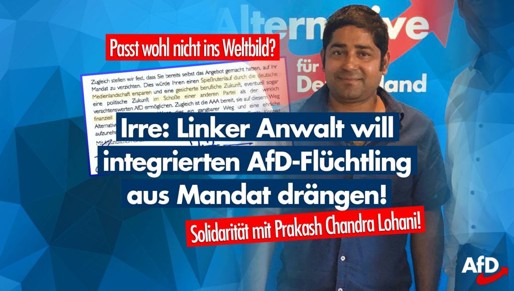 Zurück zu Linker Anwalt bedrängt AfD-Flüchtling: Mandat aufgeben oder medialer "Spießrutenlauf"!