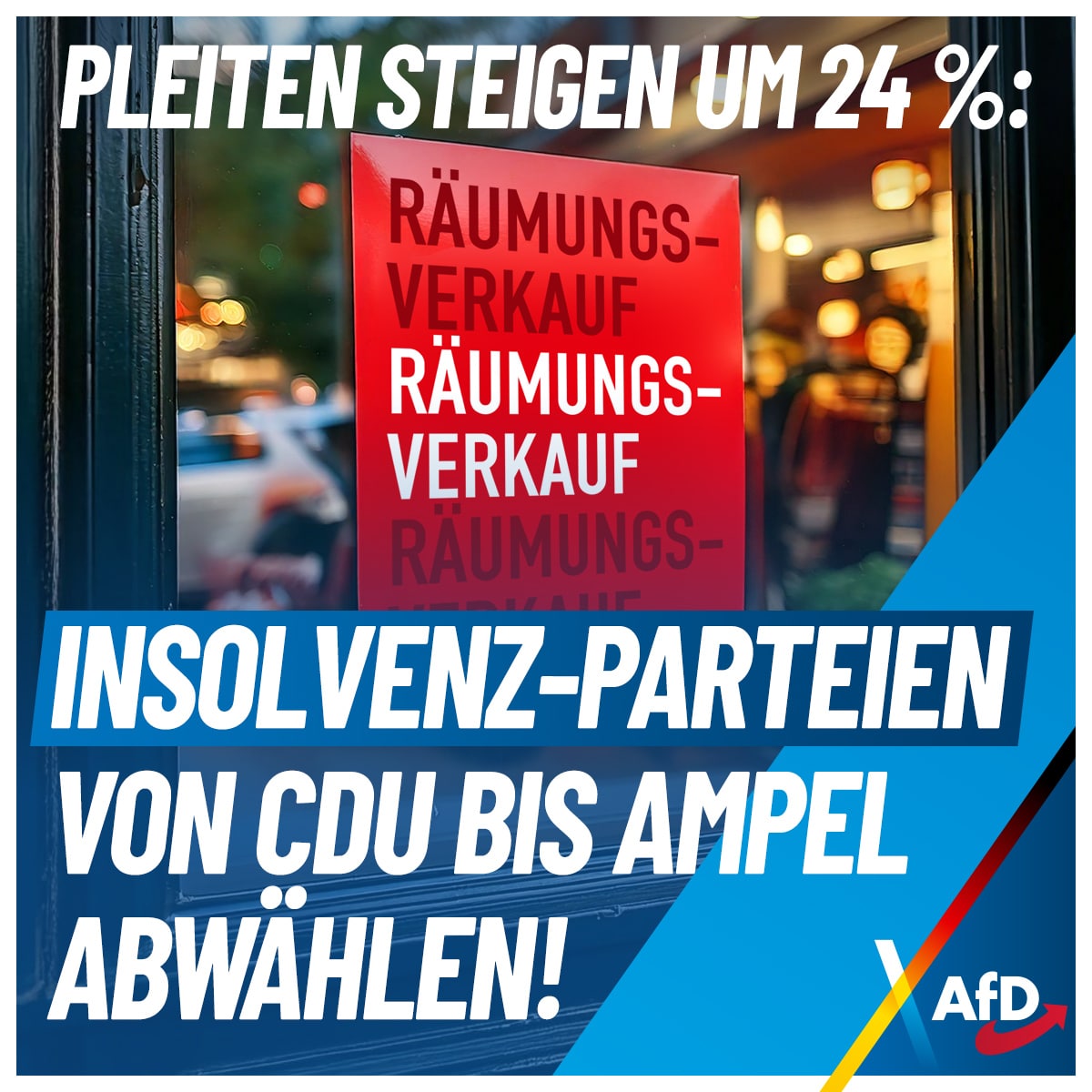 Zurück zu AfD: Insolvenzen steigen um 24 %: Insolvenz-Parteien von CDU bis Ampel abwählen!