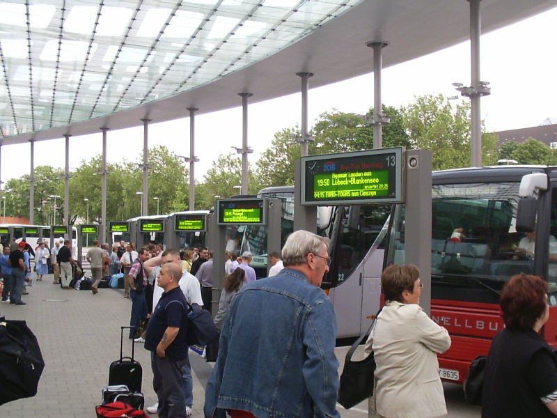 Fernbus: Bussteig auf dem Zentralen Omnibus-Bahnhof in Hamburg