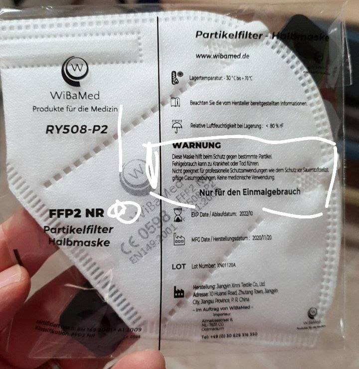 FFP2 Masken: Nur einmal verwenden, Fehlgebrauch kann zu Krankheit oder tod führen, usw. - die Exekutive interessiert dies nicht. (Symbolbild)
