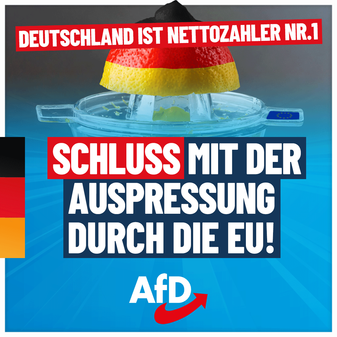 Zurück zu AfD: Deutschland ist Nettozahler Nr. 1: Schluss mit der Auspressung durch die EU!