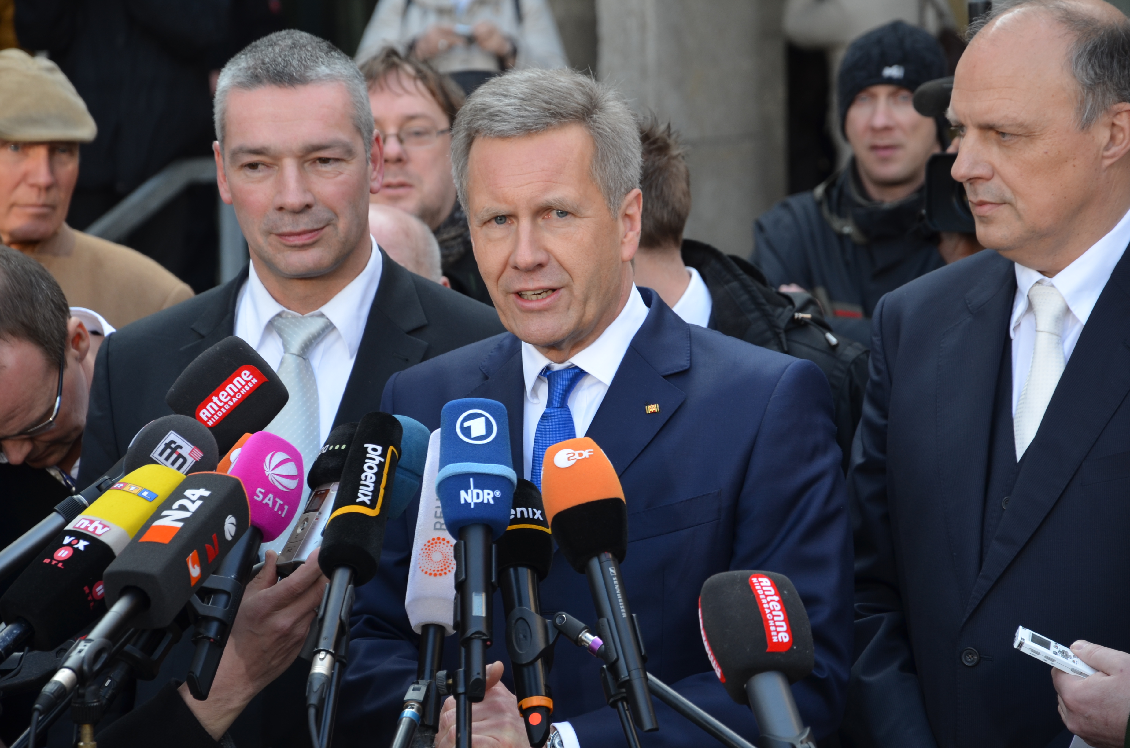Nach dem Freispruch äußerte sich Bundespräsident a.D. Christian Wulff, hier vor dem Landgericht Hannover mit seinen Verteidigern Bernd Müssig (links) und Michael Nagel, erleichtert darüber, „dass sich ... das Recht durchgesetzt hat.“ (Symbolbild)