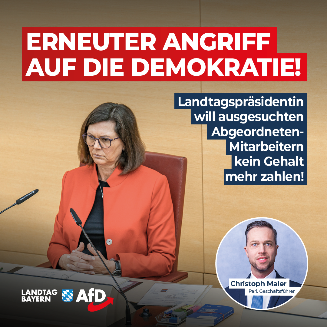 Zurück zu Christoph Maier: Landtagspräsidentin will ausgesuchten Abgeordneten-Mitarbeitern kein Gehalt mehr zahlen – Erneuter Angriff auf die Demokratie