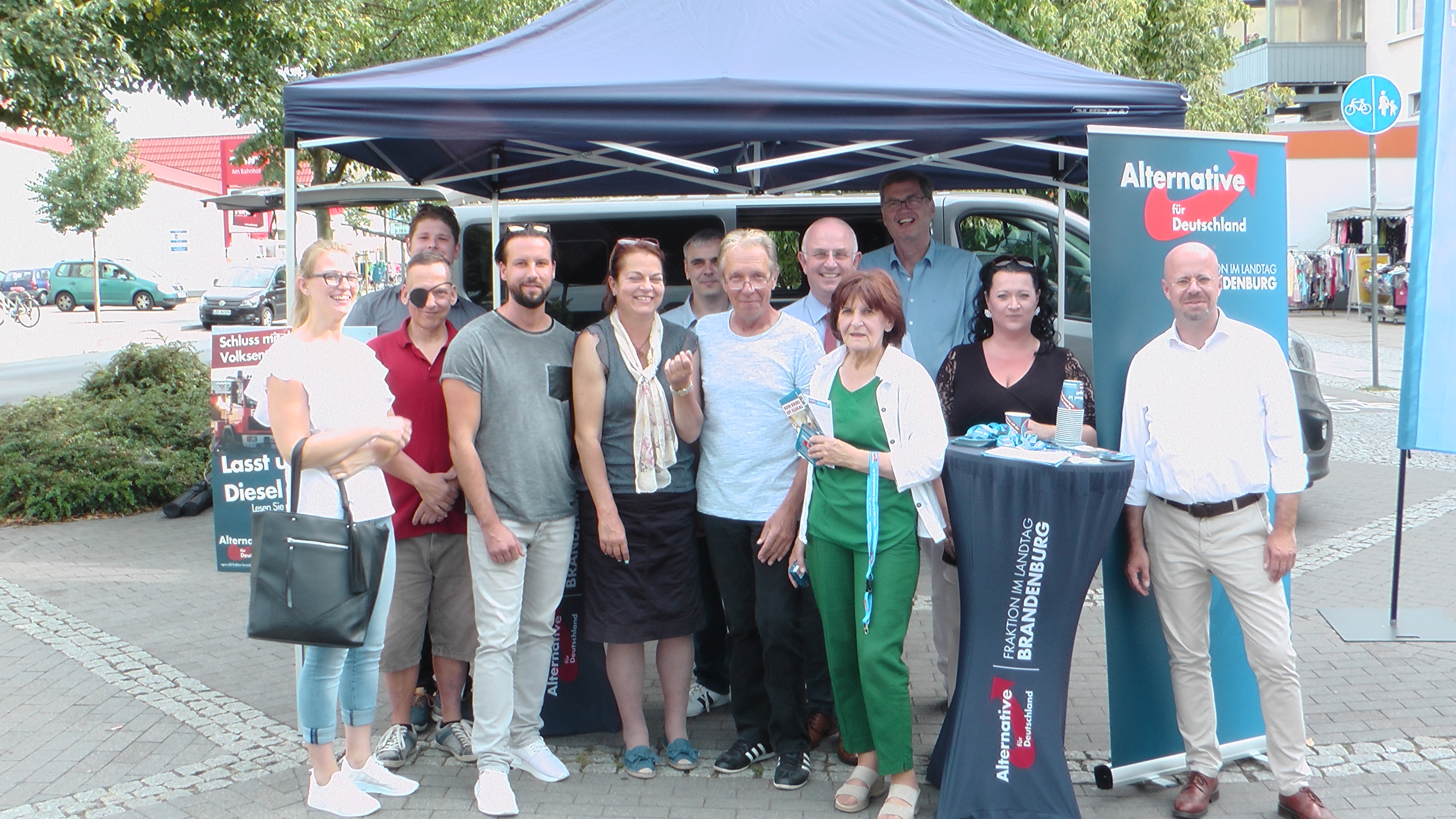 Die Pro-Diesel-Mannschaft der AfD-Fraktion Brandenburg u.a. mit (v.r.n.l.) Andreas Kalbitz (Fraktionsvorsitzender), Birgit Bessin (stellv. Fraktionsvorsitzende), Thomas Jung (stellv. Fraktionsvorsitzender).