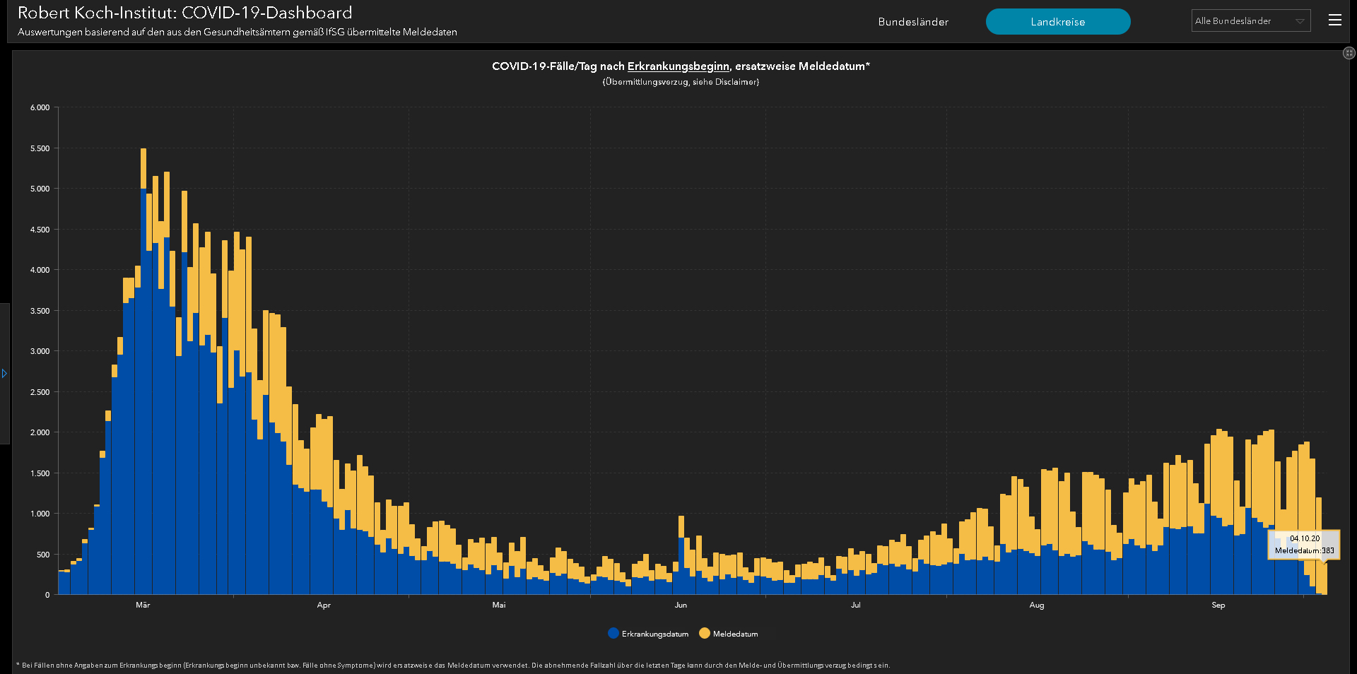Laut Robert-Koch-Institut (Corona-Dashboard) gibt es keinerlei aktuelle Corona-Positive Menschen mehr in Deutschland, lediglich 383 Fälle wurden statistisch nachgemeldet, Stand 04.10.2020
