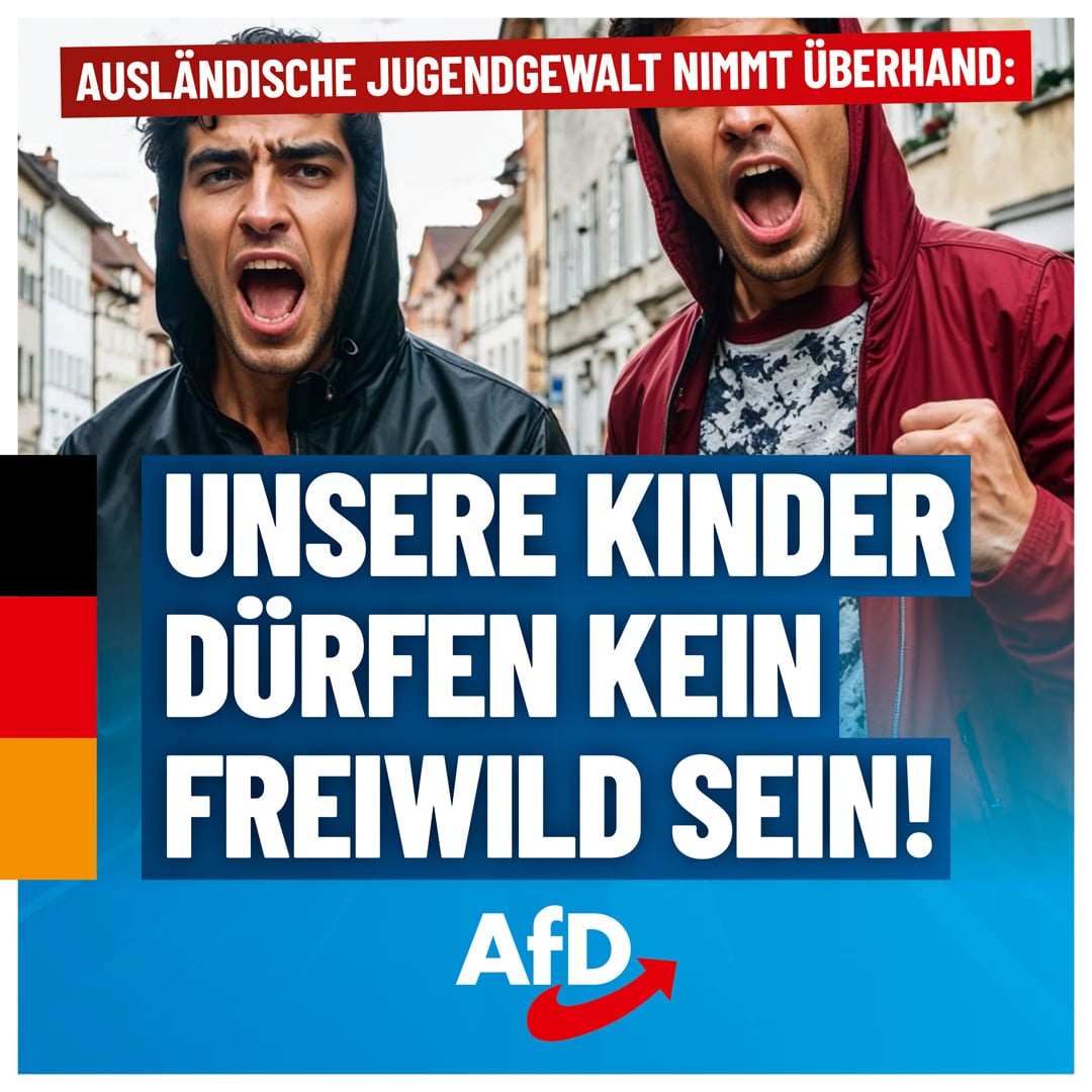 Zurück zu AfD: Schlimme Zahlen zu jugendlicher Migrantengewalt: Unsere Jugendlichen dürfen kein Freiwild sein!