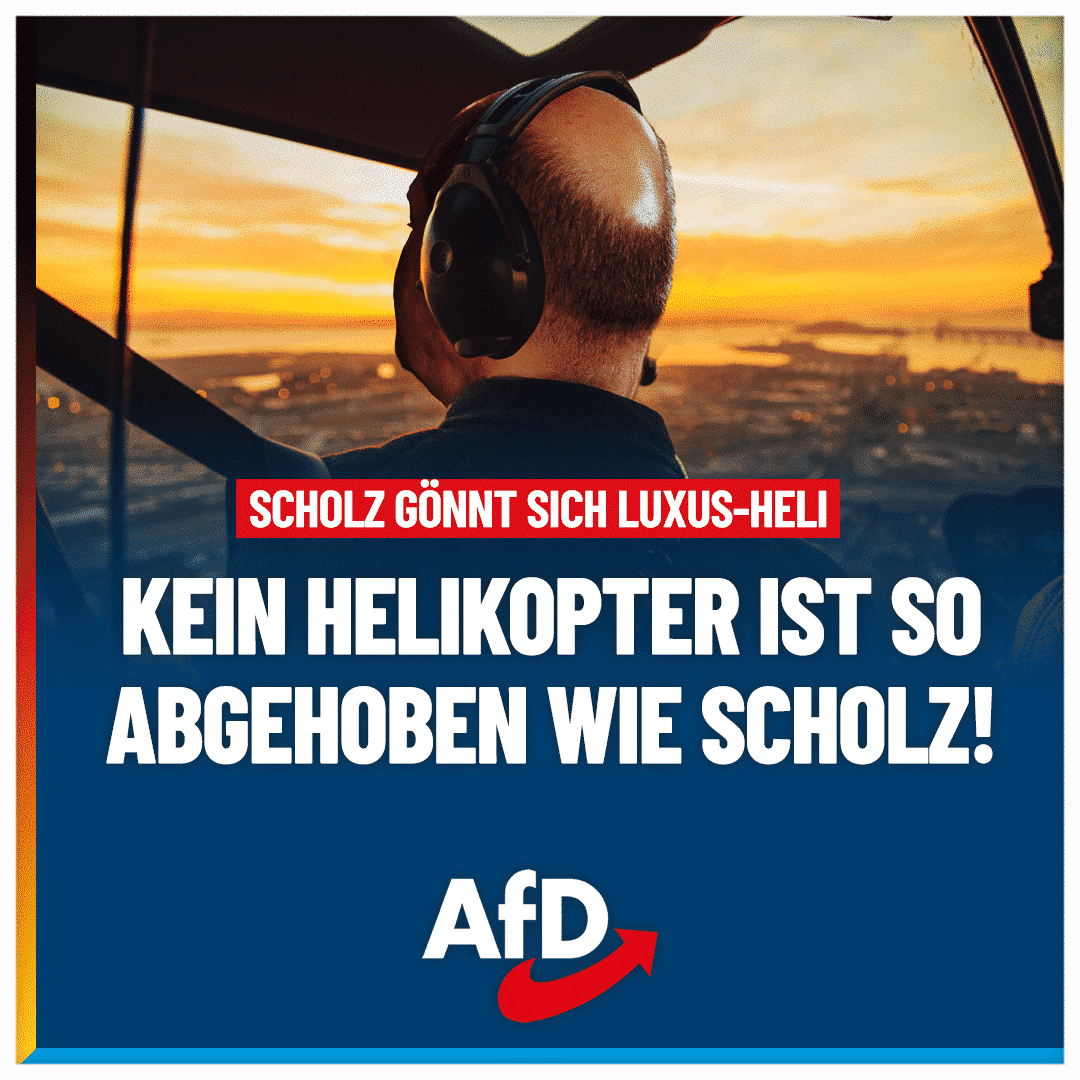 Zurück zu AfD: Scholz gönnt sich Luxus-Heli: Kein Helikopter ist so abgehoben wie Scholz!