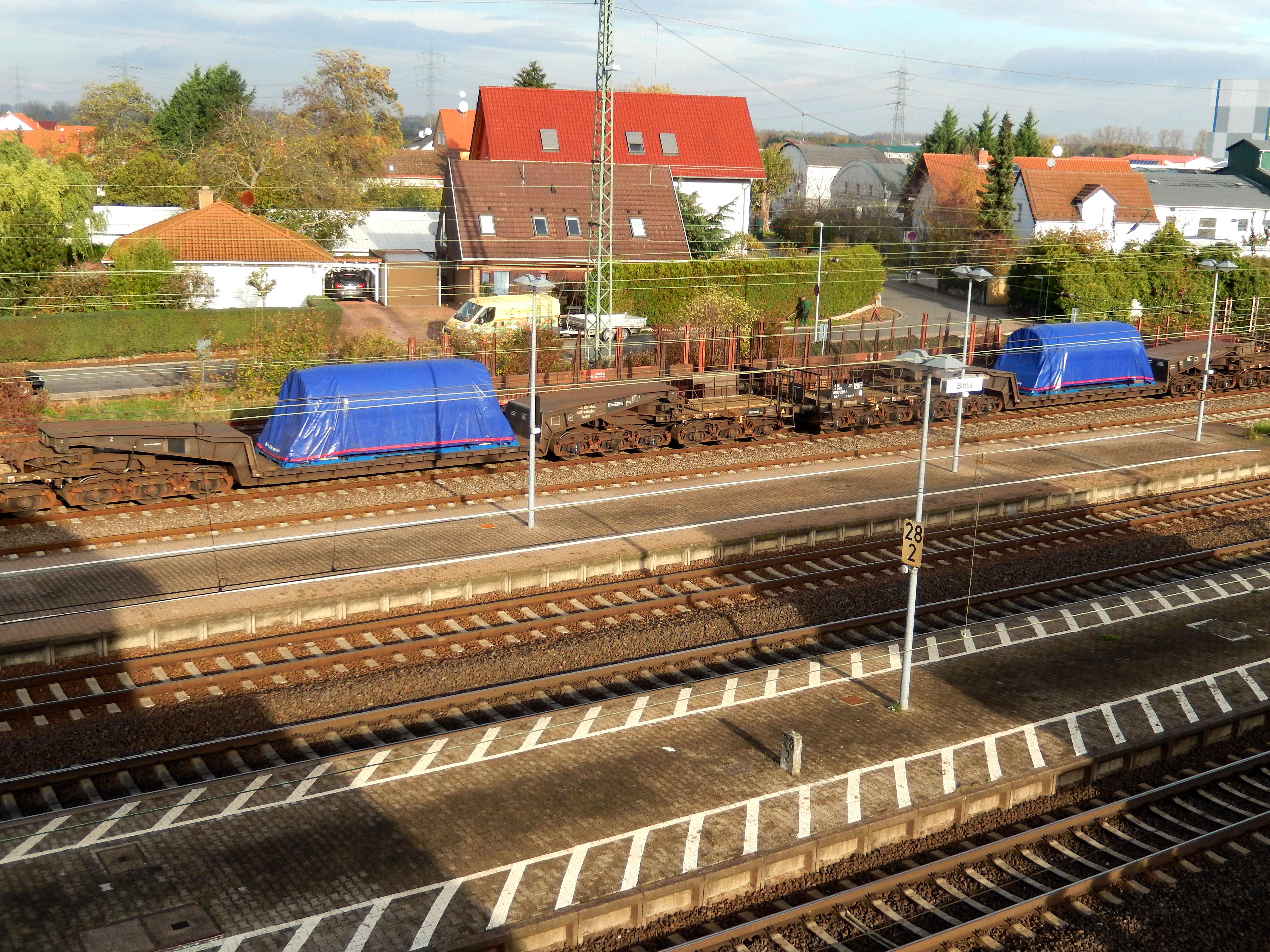 Zwei mit einer blauen Plane verpackte unbeladene Castor-Behälter im Bahnhof Biblis für Brennelemente aus dem Kernkraftwerk Biblis. (Symbolbild)