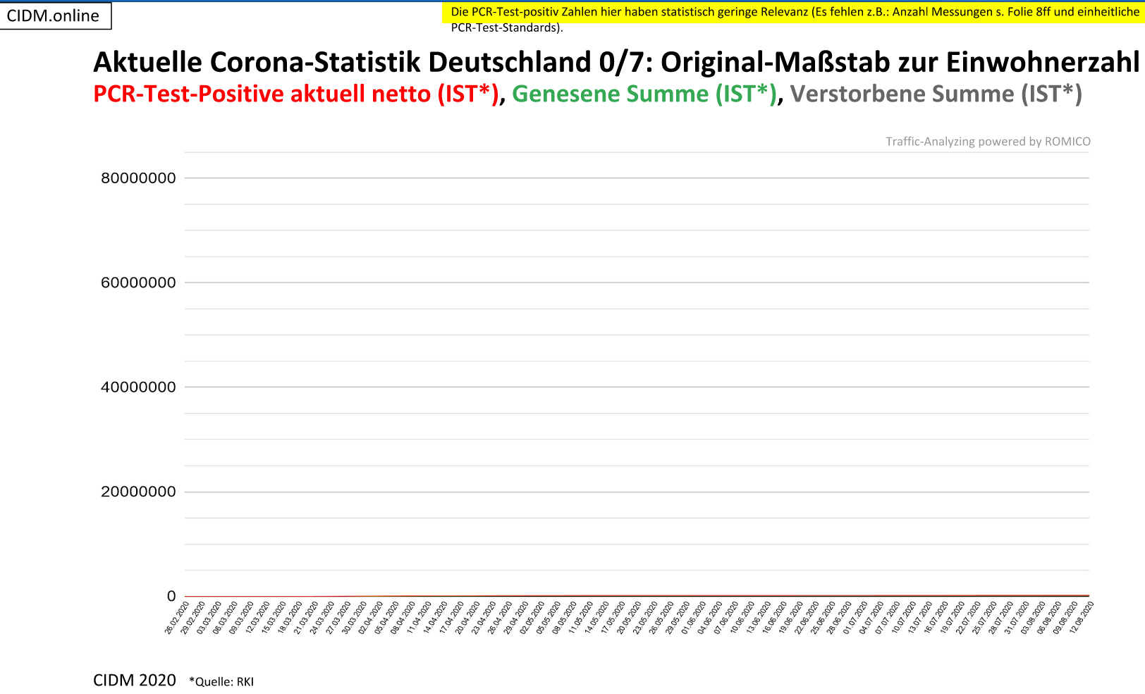 Aktuelle Corona-Statistik Deutschland im Original-Maßstab zur Einwohnerzahl vom 26.02.2020 bis 12.08.2020.