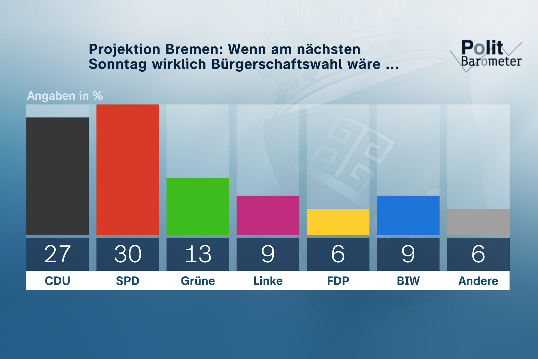 Projektion Bremen: Wenn am nächsten Sonntag wirklich Bürgerschaftswahl wäre ...