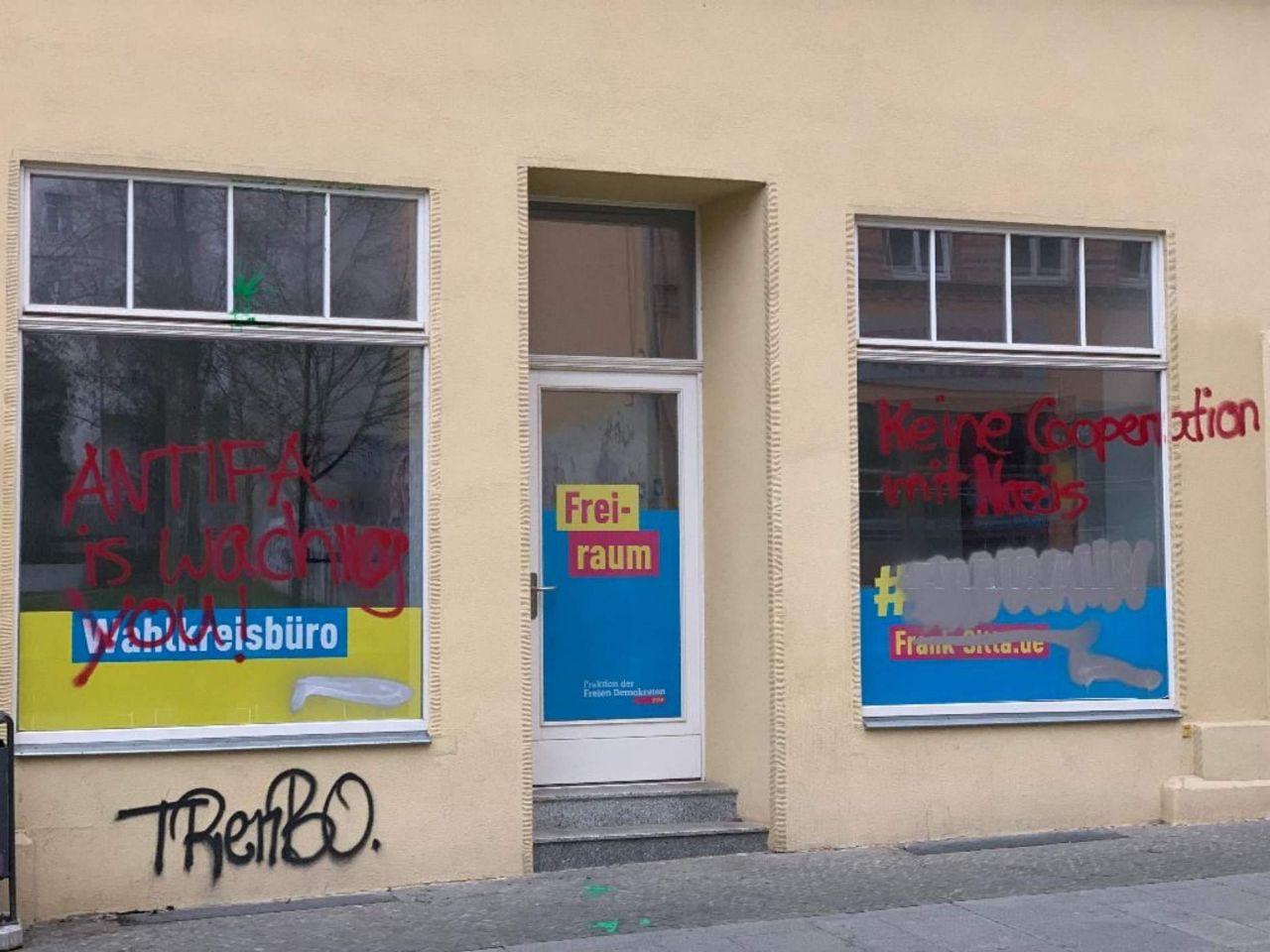 Kein AfD Wahlkampfbüro, nein, ein FDP Wahlkampfbüro nach dem Überfall der ANTIFA-Terroristen nach der demokratischen Wahl eines FDP Ministerpräsidenten (Symbolbild)
