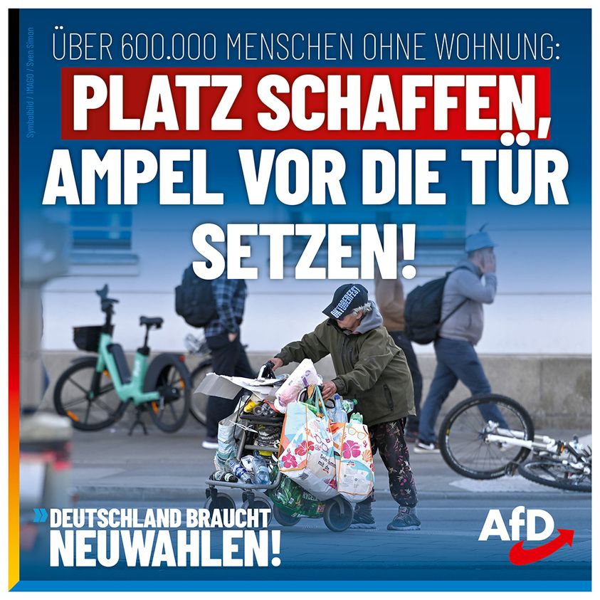 Zurück zu AfD: Über 600.000 Menschen in Deutschland ohne eigene Wohnung: Der Ampelregierung endlich kündigen!