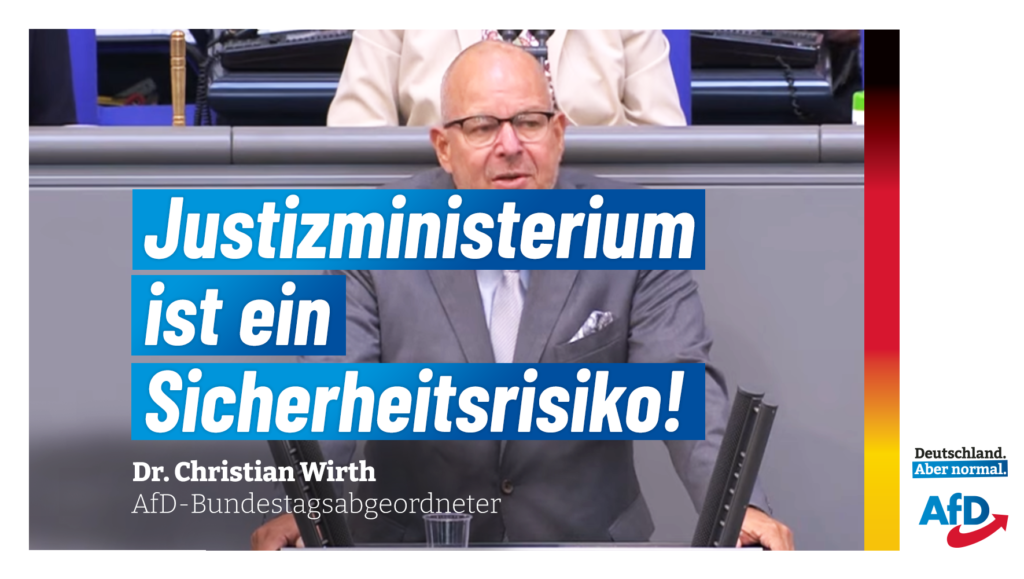 Zurück zu AfD Bundestagsreden (25.06): Das SPD-geführte Justizverhinderungsministerium ist ein Sicherheitsrisiko!