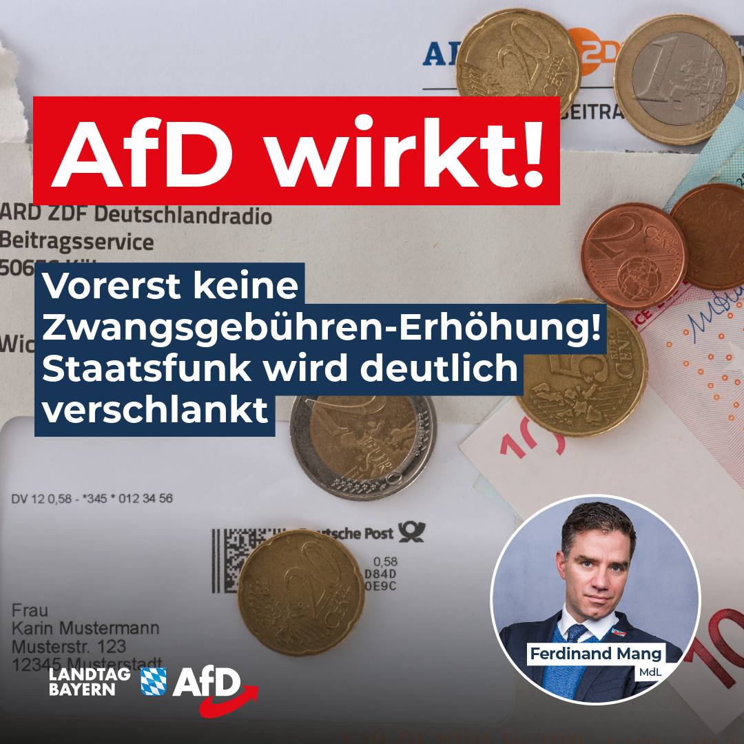 Zurück zu Ferdinand Mang: AfD wirkt: Vorerst keine Erhöhung der Rundfunk-Zwangsgebühren! – Staatsfunk wird deutlich verschlankt