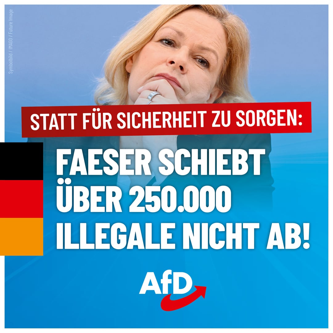 AfD: Faeser schiebt über 250.000 Illegale nicht ab!