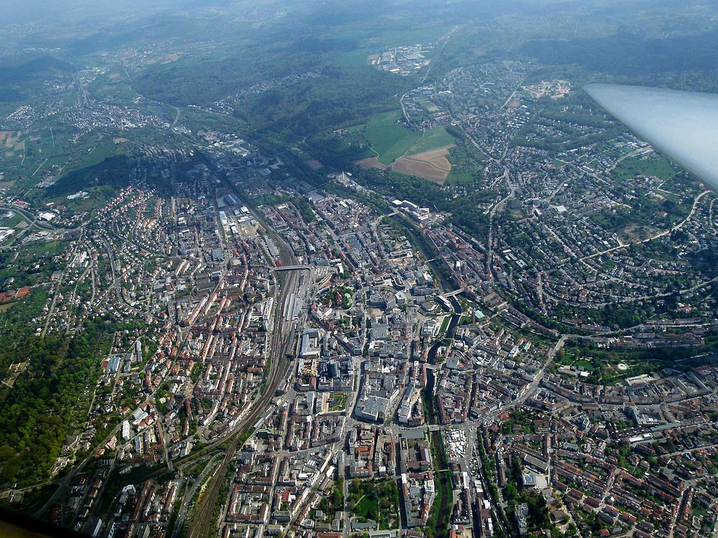 Ein Luftbild der Großstadt Pforzheim. Fast soviele Ausländer wie dort leben sind gerade frisch eingewandert.