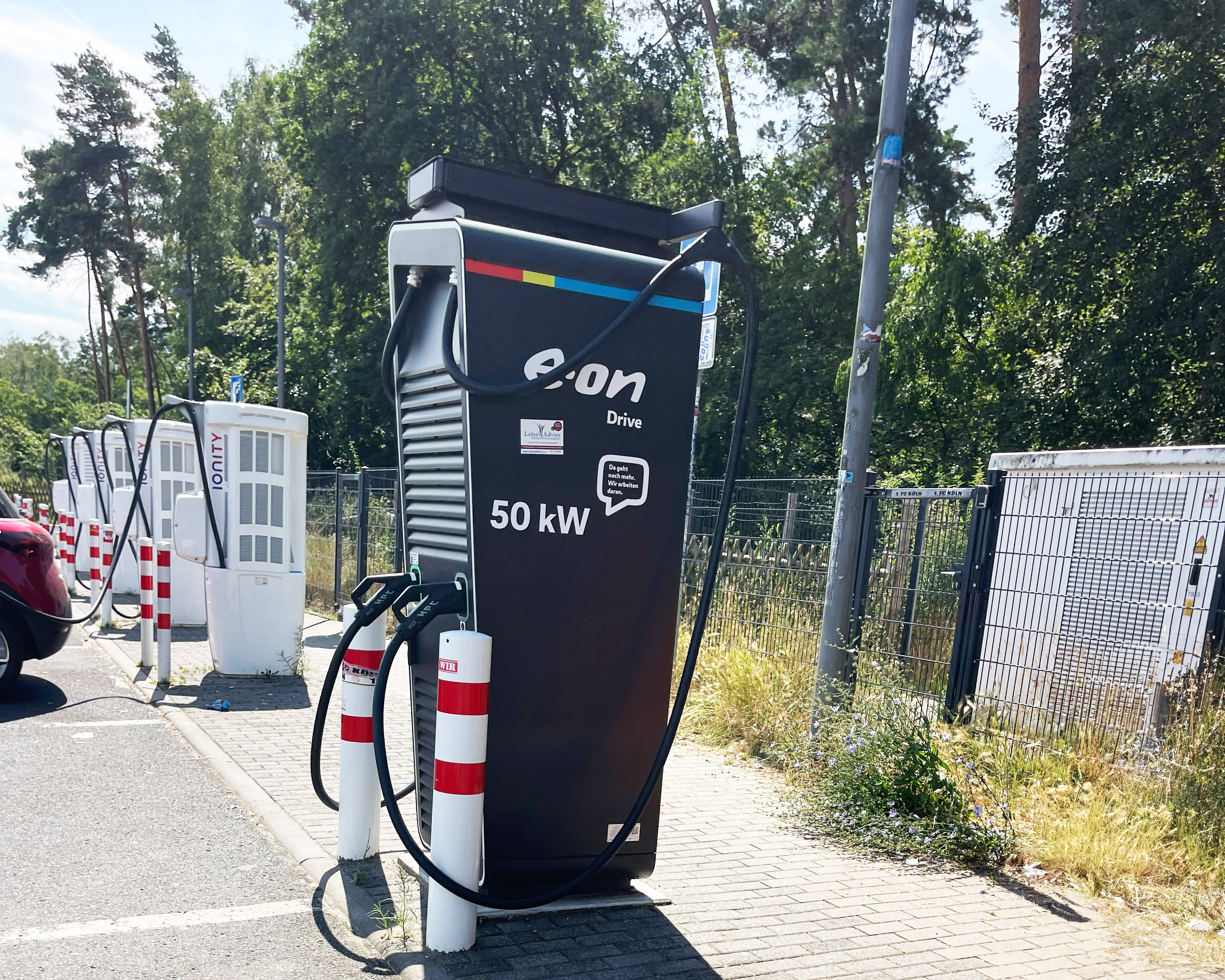 Langsame Ladesäulen mit 50 kW ohne Überdachung an der Rastanlage Weiskirchen A3