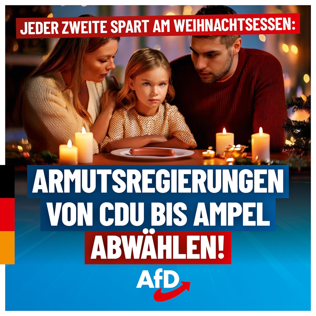 Zurück zu AfD: Jeder Zweite spart am Weihnachtsessen: Armutsregierungen von CDU bis Ampel abwählen!