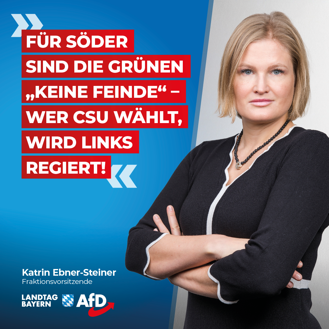 Zurück zu Katrin Ebner-Steiner: Für Söder sind die Grünen „keine Feinde“ – Wer CSU wählt, wird links regiert!