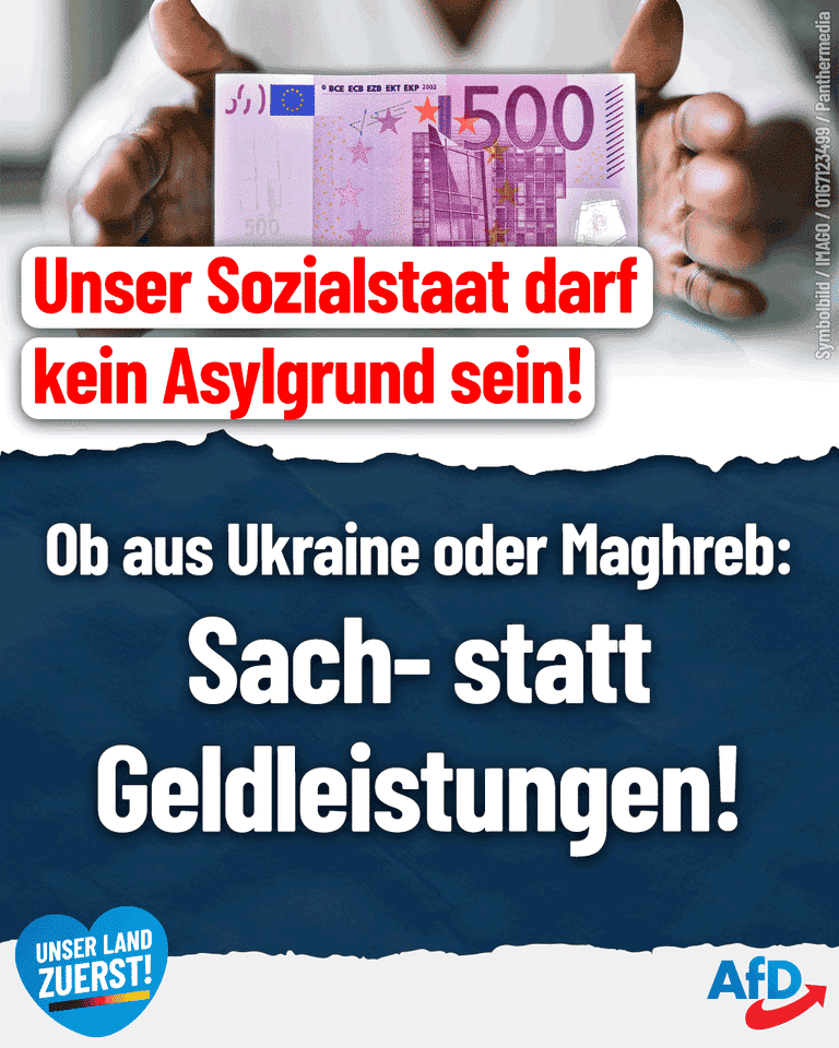 AfD: Ob aus Ukraine oder Maghreb: Sach- statt Geldleistungen!
