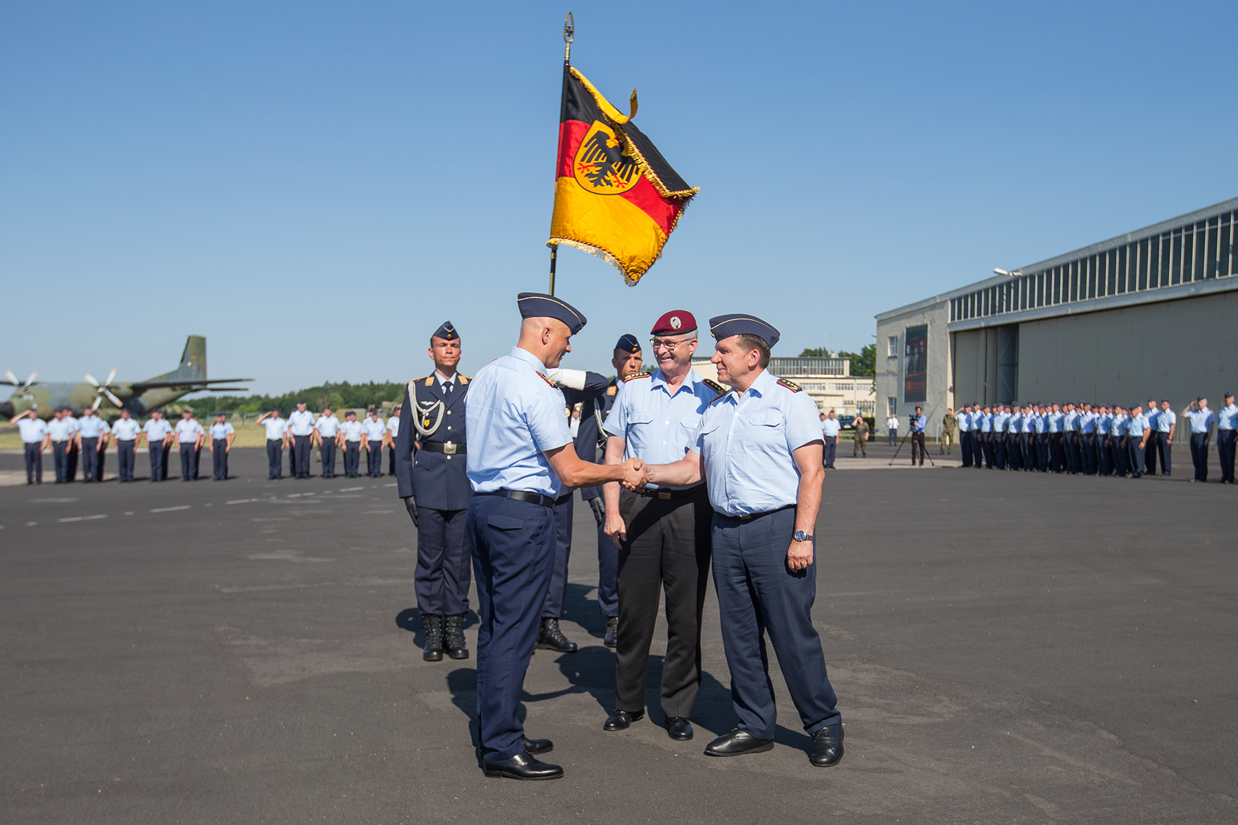 Neuer Inspekteuer der Luftwaffe Generalleutnant Gerhartz, GI Zorn und Generalleuntnant Müllner (v.l.n.r.) beim Übergabeappell der Luftwaffe von Generalleutnant Müllner an Generalleutnant Gerhartz im Kommandoluftwaffe, am 29.05.2018.