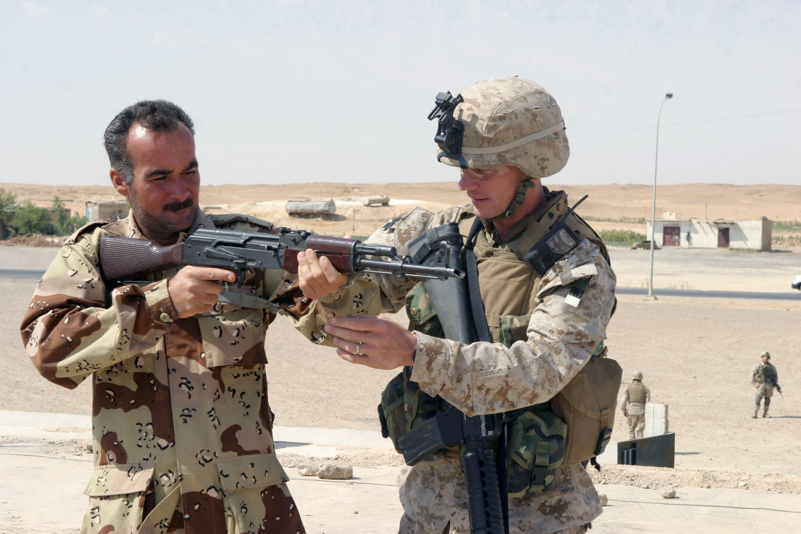 Ausbildung eines irakischen Soldaten an der AK-47 durch einen Offizier des United States Marine Corps. (Symbolbild)