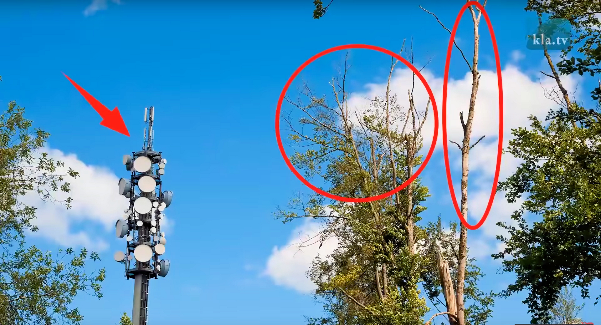 Bild: Screenshot Youtube Video: "5G: Tote Bäume und Bienen wegen Mobilfunk | 03.11.19 | kla.tv/15151" (https://www.youtube.com/watch?v=DSt6WuyMvSg) / Eigenes Werk