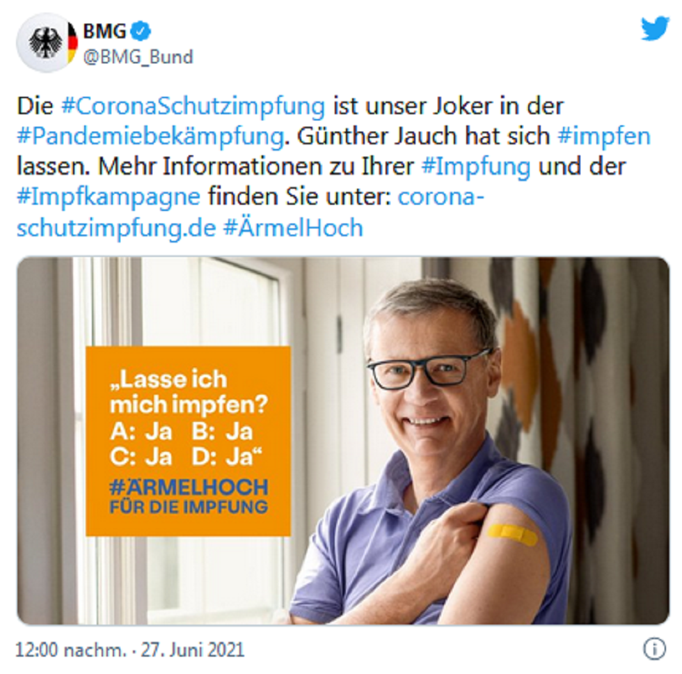 Zurück zu Mit Pflaster am Arm posiert: Gesundheitsministerium wirbt fälschlicherweise mit „geimpftem“ Günther Jauch