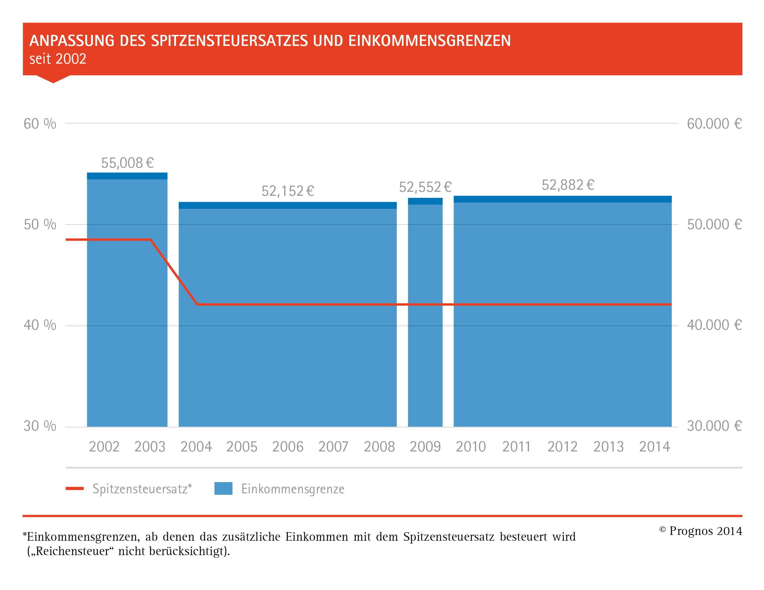 Spitzensteuersatz und Einkommensgrenzen seit Jahren unverändert. Bild: "obs/Prognos AG"