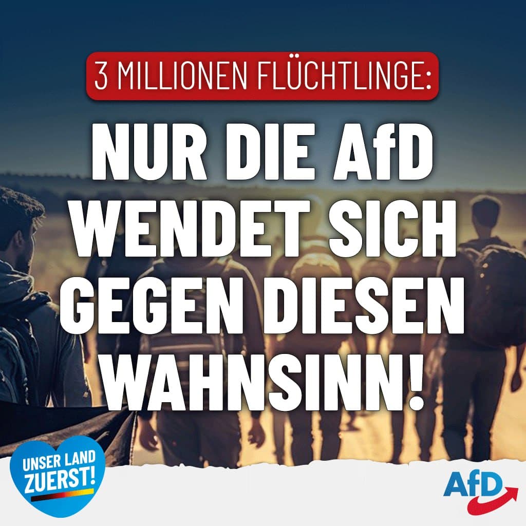 AfD: Zahl der „Flüchtlinge“ steigt auf über drei Millionen!