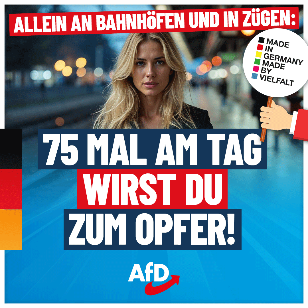 Zurück zu AfD: Allein an Bahnhöfen und in Zügen: 75 Gewalt- und Sexualdelikte pro Tag!
