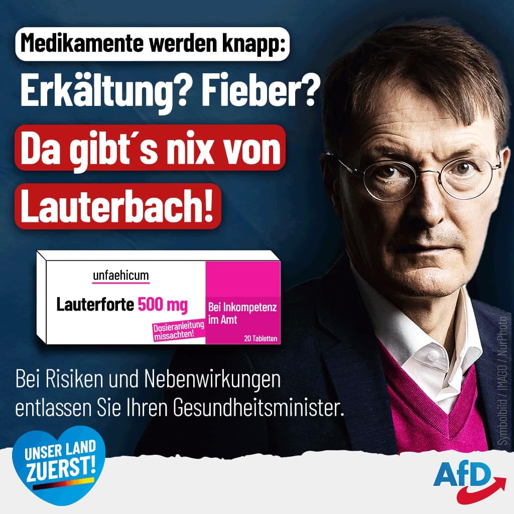 Zurück zu AfD: Medikamente werden knapp: Erkältung? Fieber? Da gibt´s nix von Lauterbach!