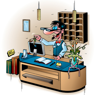 Hotel, Rezeption und Arbeiter (Symbolbild)