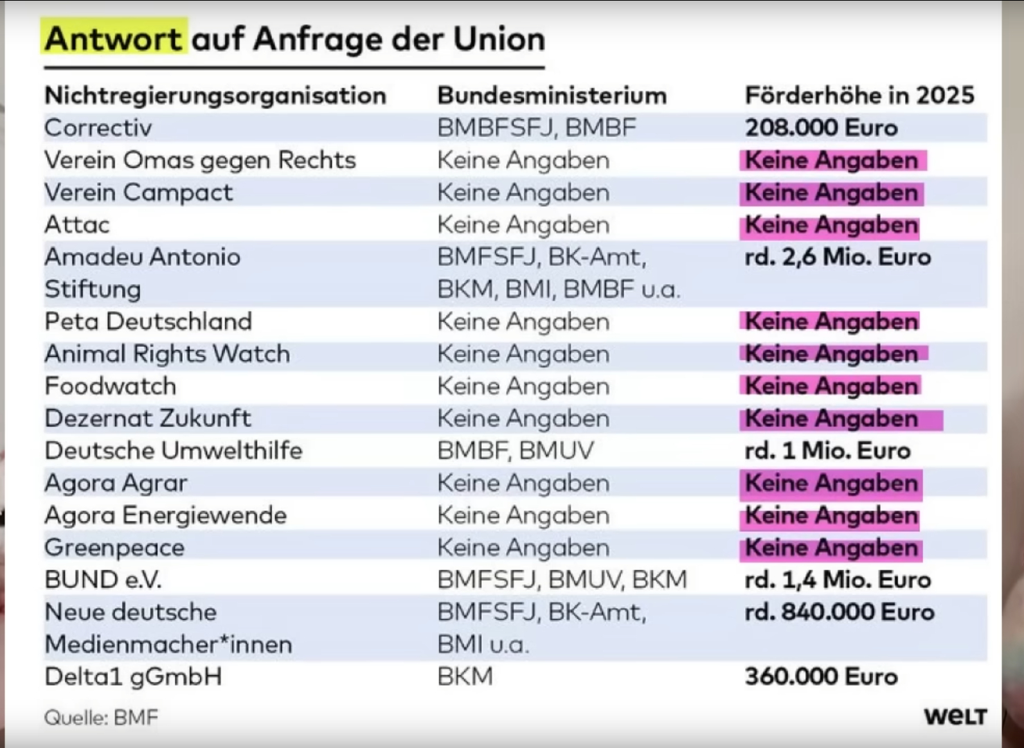 Antwort auf die Anfrage der Union 2025 zu NGO Finanzierung