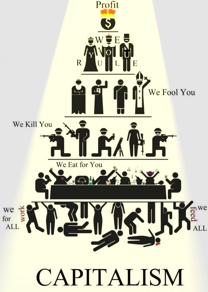 Die Kapitalismus-Pyramide oder auch Herrschaftspyramide die typischerweise verwendet wird.