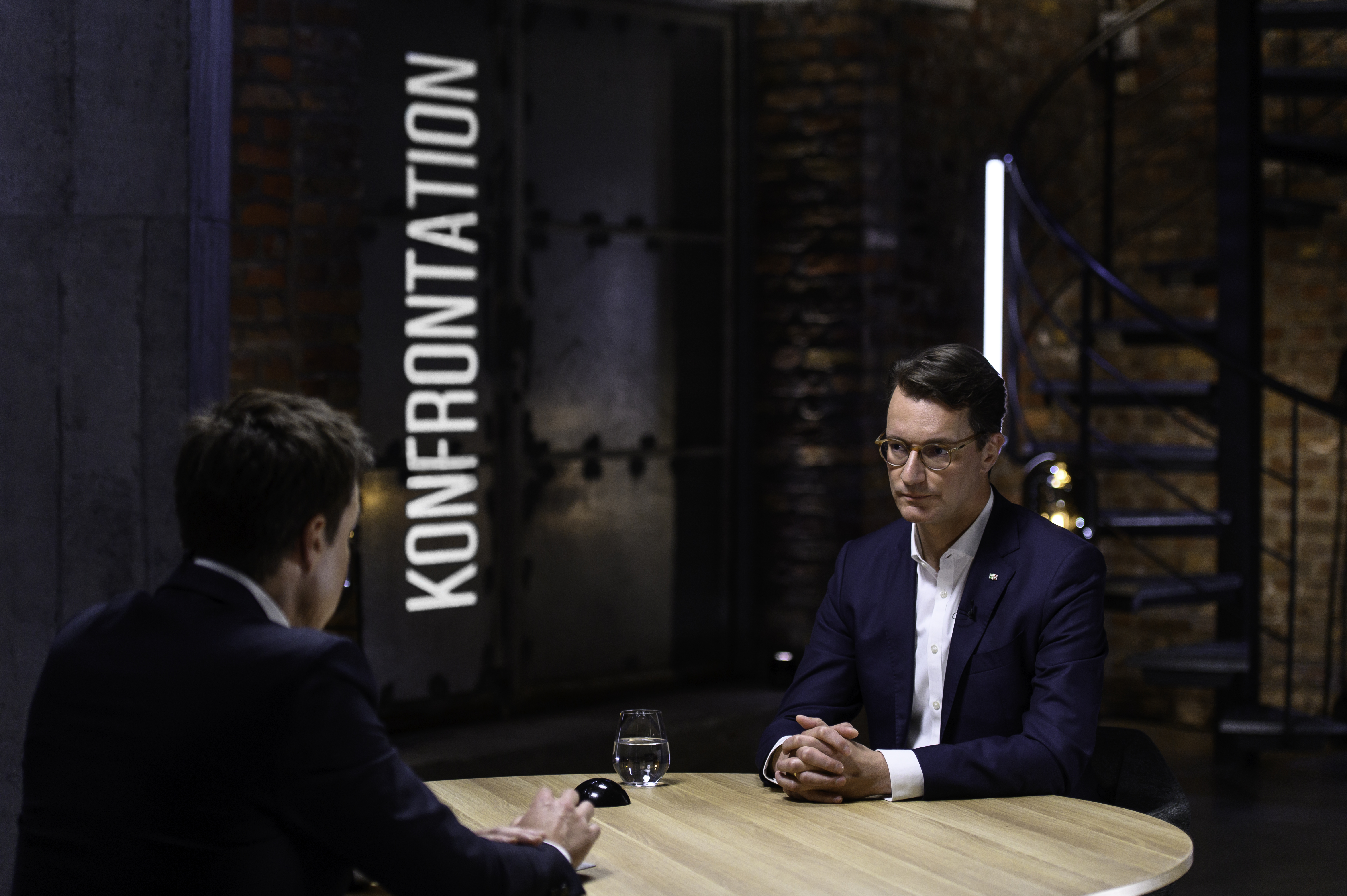 "Konfrontation: Markus Feldenkirchen trifft Hendrik Wüst", zu sehen am Montag, den 10. Juni 2024, um 22.50 Uhr im Ersten und online first ab 18 Uhr in der ARD Mediathek.