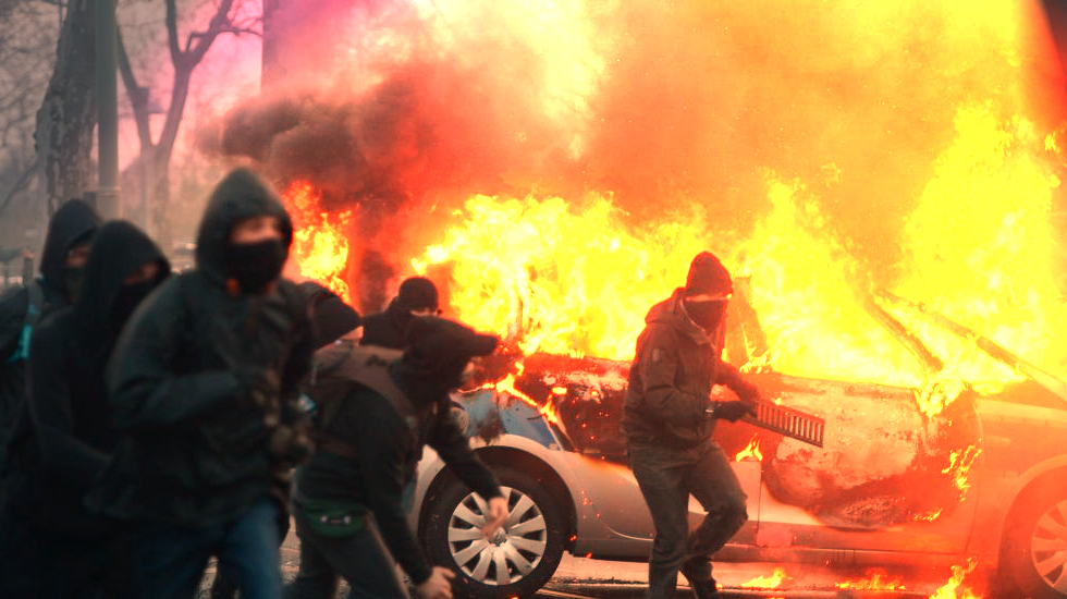 Linksterroristen der Antifa im Zerstörungsrausch (Symbolbild)
