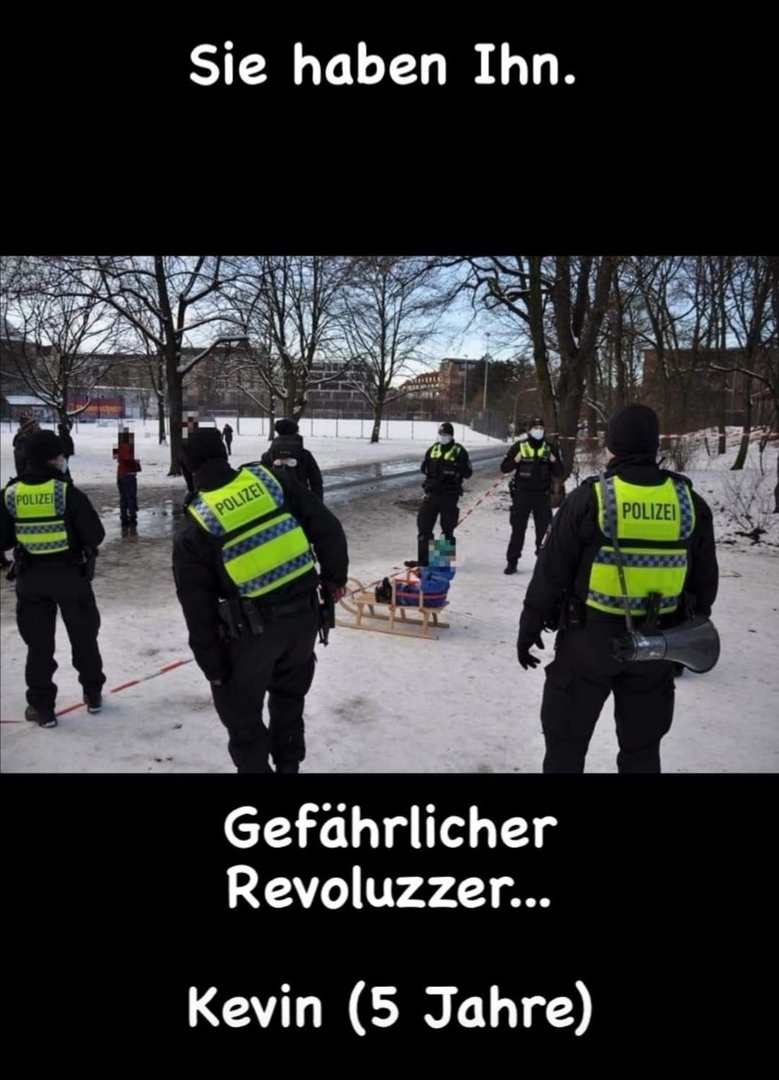 2020/2021: Polizisten jagen Kinder die schlittenfahren oder Geburstag feiern (Symbolbild)