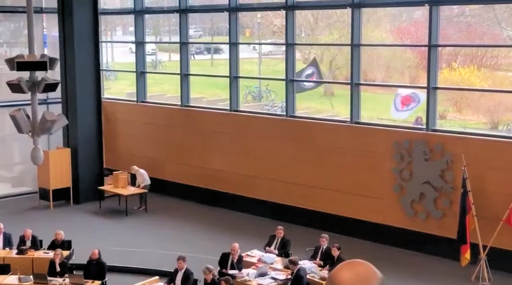 Antifa überwacht von außerhalb des thüringer Parlaments die Wahl von Ramelow (Symbolbild)